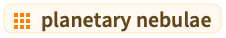 - "Nebula" entity classes include groups based on nebula type, such as planetary nebulae and diffuse nebulae, as well as groups related to catalog membership, such as Messier objects.