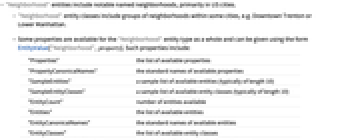 - "Neighborhood" entities include notable named neighborhoods, primarily in US cities.