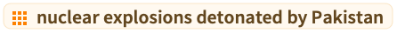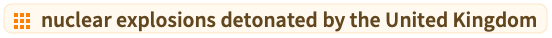 - "NuclearExplosion" entities include explosions from nuclear weapons that were detonated during a war or as part of nuclear weapons testing.