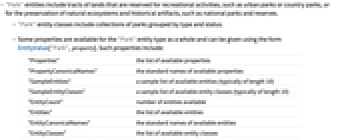 - "Park" entity classes include collections of parks grouped by type and status.