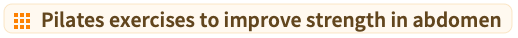 - "PilatesExercise" entities include various types of Pilates exercises and movements.