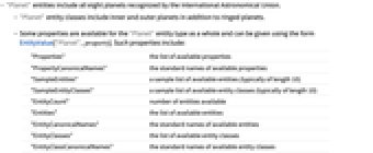 - "Planet" entity classes include inner and outer planets in addition to ringed planets.