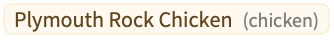 - "PoultryBreed" entities include notable domesticated chicken, duck, turkey and goose breeds.
