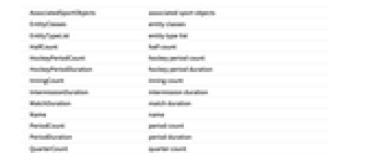 AssociatedSportObjects associated sport objects EntityClasses entity classes EntityTypeList entity type list HalfCount half count HockeyPeriodCount hockey period count HockeyPeriodDuration hockey period duration InningCount inning count IntermissionDuration intermission duration MatchDuration match duration Name name PeriodCount period count PeriodDuration period duration QuarterCount quarter count RoundCount round count SetCount set count Sport sport StandardsBody standards body TotalDuration average total duration