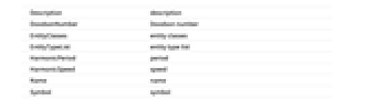 Description description DoodsonNumber Doodson number EntityClasses entity classes EntityTypeList entity type list HarmonicPeriod period HarmonicSpeed speed Name name Symbol symbol