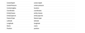 CenterDepth center depth CenterPressure center pressure ContainingSea location Coordinates coordinates EntityClasses entity classes EntityTypeList entity type list FeatureType feature type Latitude latitude Longitude longitude Name name Position position