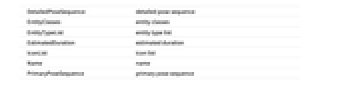 DetailedPoseSequence detailed pose sequence EntityClasses entity classes EntityTypeList entity type list EstimatedDuration estimated duration IconList icon list Name name PrimaryPoseSequence primary pose sequence