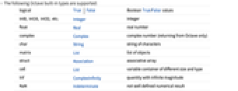 - The following Octave built-in types are supported: