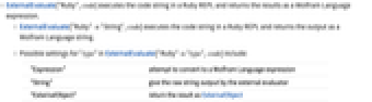 - Possible settings for "type" in ExternalEvaluate["Ruby""type",code] include: