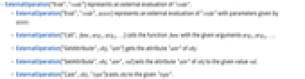 - ExternalOperation["Eval","code"] represents an external evaluation of "code".