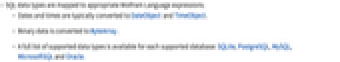 - SQL data types are mapped to appropriate Wolfram Language expressions.