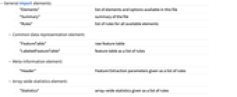 "FeatureTable" raw feature table "LabeledFeatureTable" feature table as a list of rules - Meta-information element: