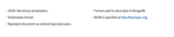 - A BSON document is a list of key/value pairs. The keys of the association must be strings, and values must be one of the following types: