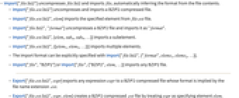 - Import["file","BZIP2"] or Import["file",{"BZIP2",elem,…}] imports any BZIP2 file.