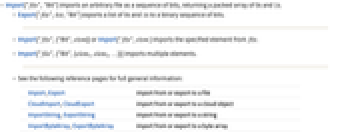 Import, Export import from or export to a file CloudImport, CloudExport import from or export to a cloud object ImportString, ExportString import from or export to a string ImportByteArray, ExportByteArray import from or export to a byte array