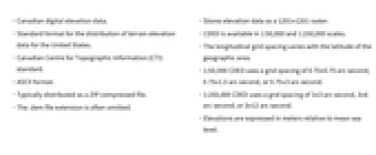 - 1:250,000 CDED uses a grid spacing of 3×3 arc second, 3×6 arc second, or 3×12 arc second.