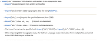 - When importing CDED topographic data, the Wolfram Language reads information from multiple files contained in the CDED directory or archive file.