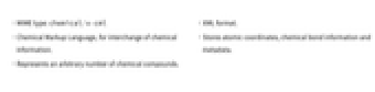 - Export["file.cml",{mol1,mol2,…}] creates a CML file from a list of molecules.