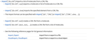 - Export["file.cml",expr] exports a molecule or list of molecules to a CML file.
