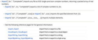 - Import["file","Complex64"] imports any file as IEEE single-precision complex numbers, returning a packed array of real numbers.
