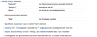 - Import["file",{"Complex64",{elem1,elem2,…}}] imports multiple elements.