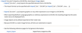 - Export["file.dcm",expr] exports graphics or any other expression as an image to a DICOM file.