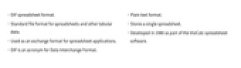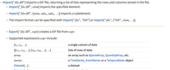 - The import format can be specified with Import["file","DIF"] or Import["file",{"DIF",elem,…}].