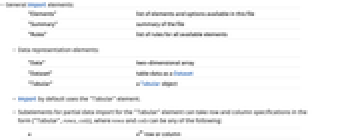 - Subelements for partial data import for the "Tabular" element can take row and column specifications in the form {"Tabular",rows,cols}, where rows and cols can be any of the following: