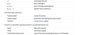 "ColumnLabels" names of columns "ColumnTypes" association with data type for each column "Schema" TabularSchema object - Columns or identifiers typically present in an extended log file are:
