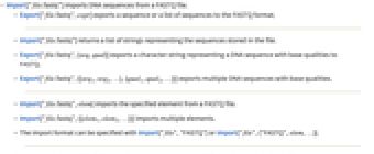 - Import["file.fastq"] imports DNA sequences from a FASTQ file.
