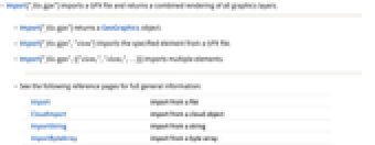 - Import["file.gpx"] imports a GPX file and returns a combined rendering of all graphics layers.