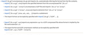 - The import format can be explicitly specified with Import["file.gz",{"GZIP",…}].