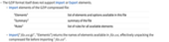 "Elements" list of elements and options available in this file "Summary" summary of the file "Rules" list of rules for all available elements - Import["file.ext.gz","Elements"] returns the names of elements available in file.ext, effectively unpacking the compressed file before importing "file.ext".