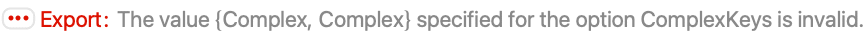 "ComplexKeys" Automatic keys for complex interpretation and export - By default, {"Re","Im"} are used as complex keys. Other settings include: