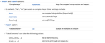 None no complex interpretation (import only) Automatic use automatic keys {key1,key2} use explicit keys - Import option: