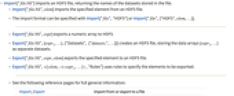 - The import format can be specified with Import["file","HDF5"] or Import["file",{"HDF5",elem,…}].