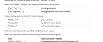 "Attributes" group attributes "HardLinks" hard links to other objects "SoftLinks" soft links to other objects - Soft and hard links can be specified using "linkname"path.