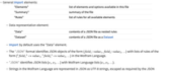 "Elements" list of elements and options available in this file "Summary" summary of the file "Rules" list of rules for all available elements - Data representation element: