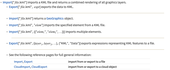 - Import["file.kml"] imports a KML file and returns a combined rendering of all graphics layers.