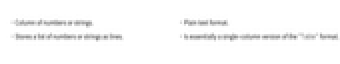 "Data" list of numbers or strings, each representing a line "Grid" list data as a Grid object - Import and Export use the "Data" element by default.