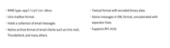 - Native archive format of email clients such as Unix mail, Thunderbird, and many others.