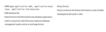 - Native format of the Microsoft Access database application.