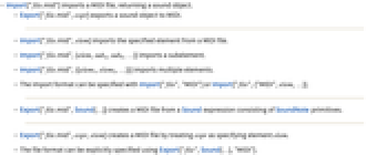 - Export["file.mid",expr] exports a sound object to MIDI.