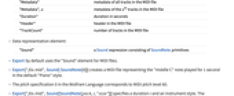 "Sound" a Sound expression consisting of SoundNote primitives - Export by default uses the "Sound" element for MIDI files.