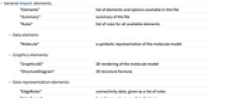 - Import["file.mol",{{elem1,elem2,…}}] imports multiple elements.