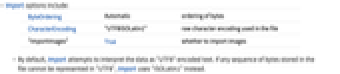 ByteOrdering Automatic ordering of bytes CharacterEncoding "UTF8ISOLatin1" raw character encoding used in the file "ImportImages" True - whether to import images
