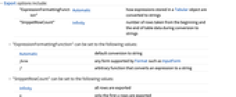 "SnippetRowCount" Infinity number of rows taken from the beginning and the end of table data during conversion to strings - "ExpressionFormattingFunction" can be set to the following values: