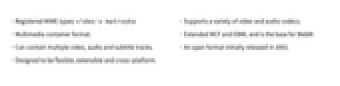 Supported decoders for Matroska on each platform can be extracted using $VideoDecoders: