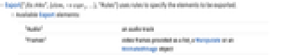 "Audio" an audio track "Frames" video frames provided as a list, a Manipulate or an AnimatedImage object