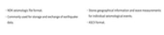 - Commonly used for storage and exchange of earthquake data.